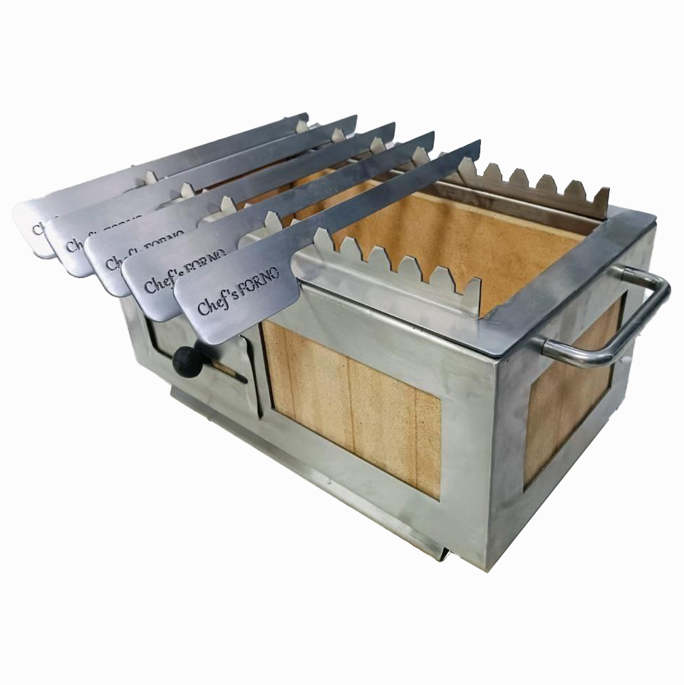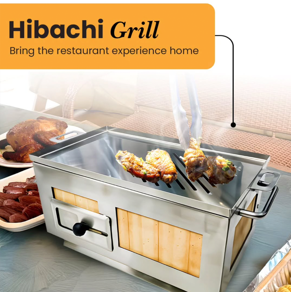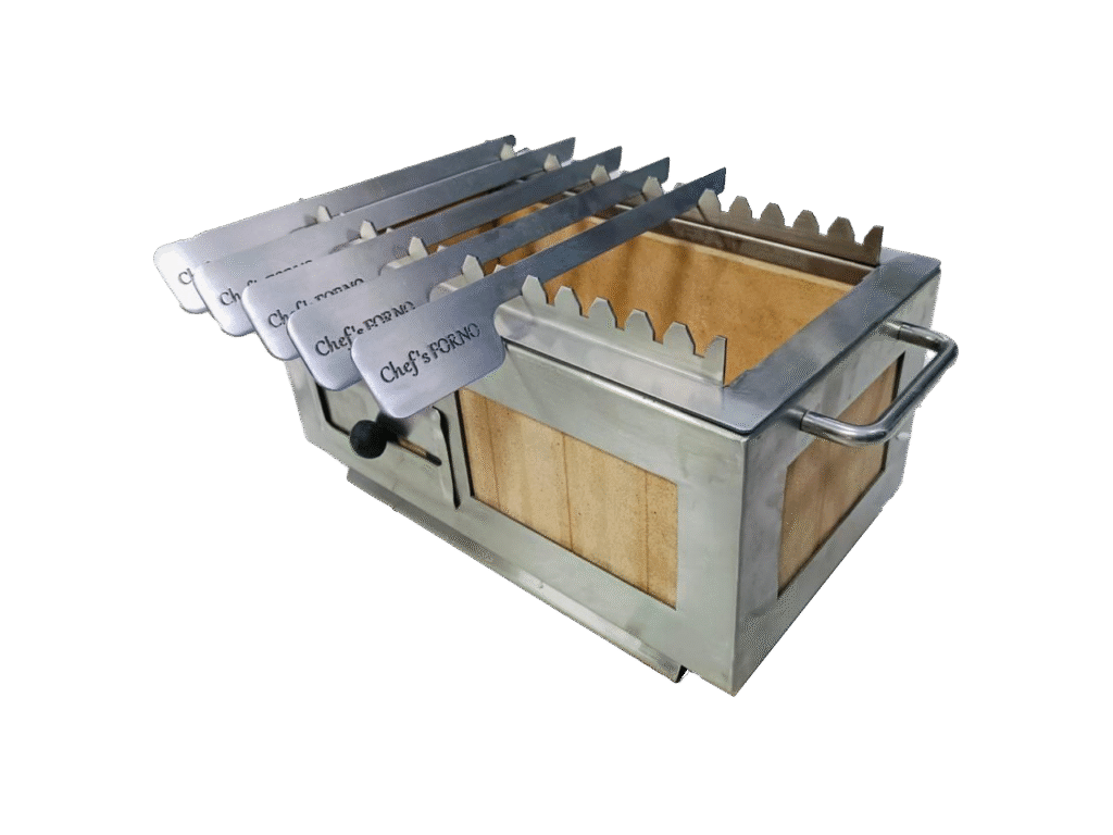 Crafted in India by Chef’s Forno, the Hibachi Grill combines durability with authentic cooking tradition. Built with a robust stainless steel finish, ergonomic handles, and heat-retaining mineral tiles, it’s designed for both home chefs and professional kitchens. Its compact, versatile design fits seamlessly on any surface, delivering unmatched flavor and an elevated grilling experience.
